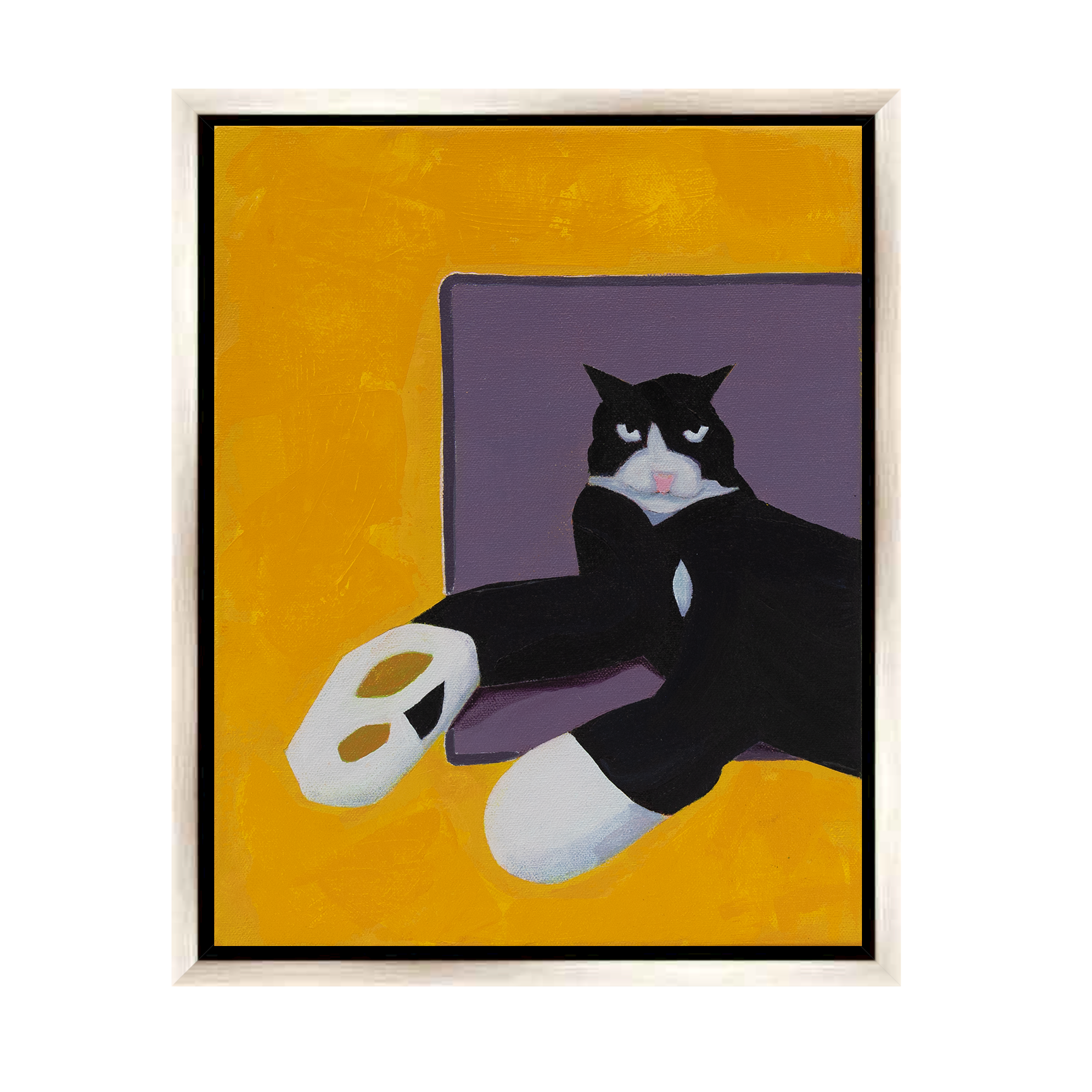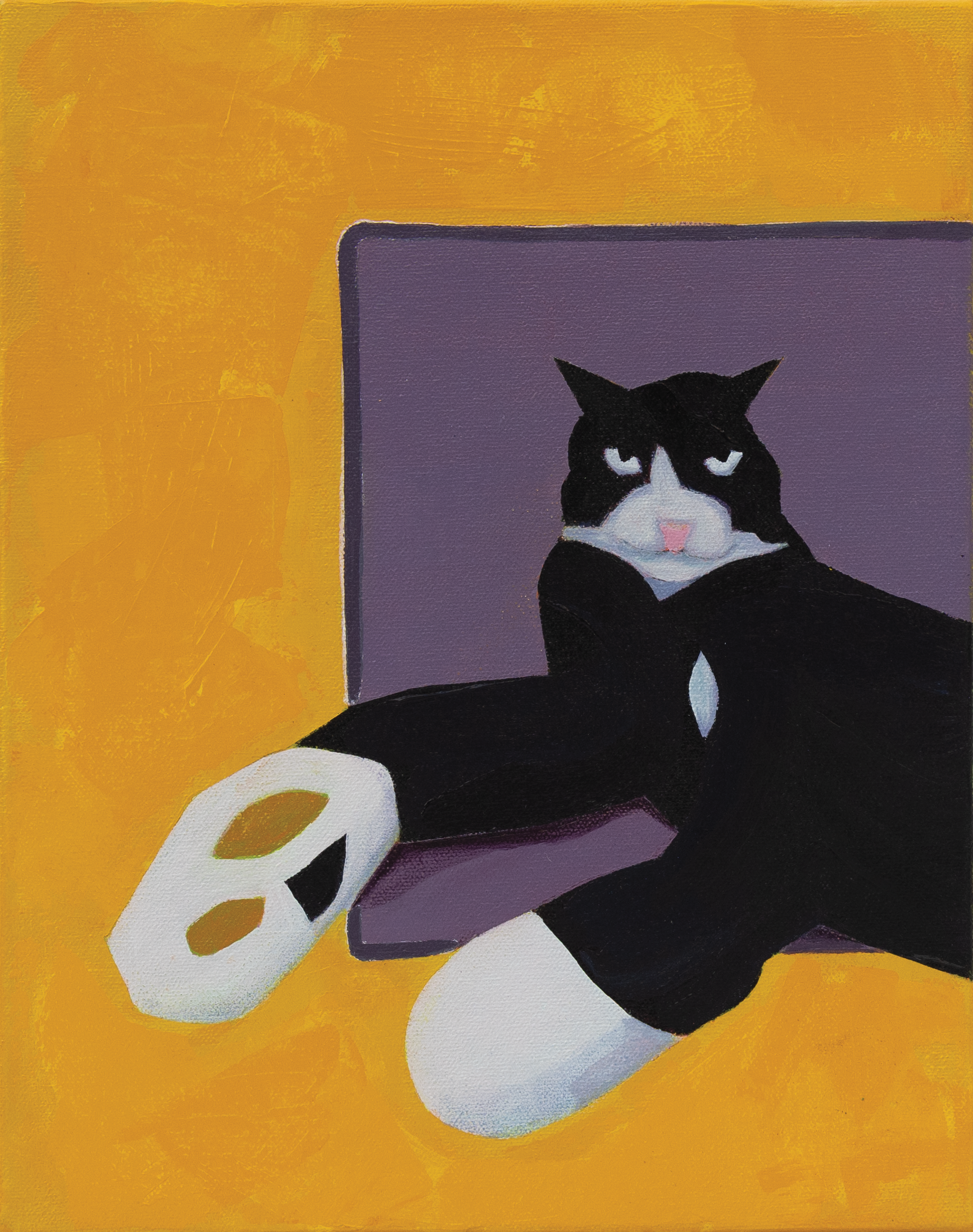 About: I painted a series inspired by Ollie, an extraordinary cat who stands out among all the cats I’ve encountered. Ollie’s unique charm is best captured in the way he follows his family on walks—not on a leash like the dogs, but freely following alongside, delighting and amazing the neighbors. Despite our limited time together, his loving and cuddly nature left a profound impact, offering me a sense of comfort and connection during a time when I needed it most. To reflect the joy and light he brought into my life, I chose cheerful, vibrant colors that echo his playful and uplifting spirit. Each piece in this series is a celebration of Ollie’s remarkable ability to inspire happiness and connection with his unique and heartwarming presence.